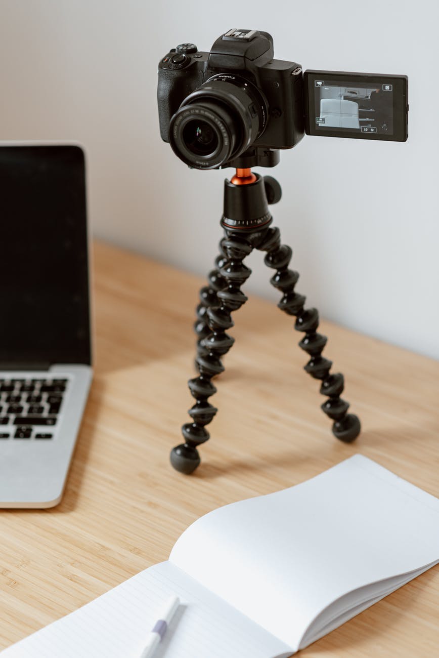 Previous Image Next Image camera on tripod recording video on table Photo by Anete Lusina on Pexels.com